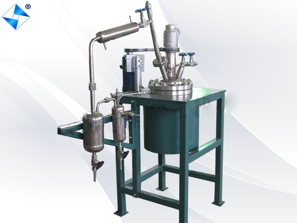 實驗室聚合釜由反應容器、攪拌器及傳動系統、降溫裝置、防爆裝置、加熱爐等組成.酯化縮聚反應釜是一種將酯化與縮聚同時完成的反應裝置,在酯化縮聚反應釜做酯化反應時通過精餾柱、填料塔、冷凝器將酯化反應生產的水分及低分子物分離出去;在酯化縮聚反應釜做縮聚反應時將酯化反應閥門關閉將縮聚閥門打開,將溫度調到較高溫度條件下通過攪拌系統將許多相同或不相同低分子物質相互作用,生成高分子物質,同時將析出小分子通過冷凝器接收罐將其分離收集起來。酯化縮聚反應釜廣泛應用在有機合成、化工化纖等領域。